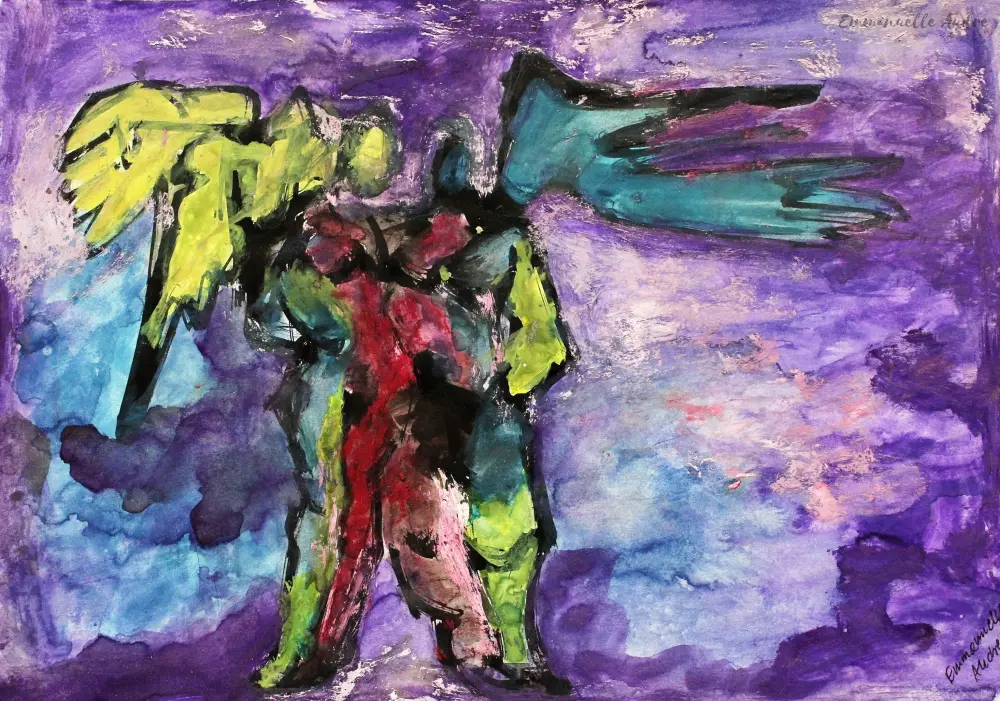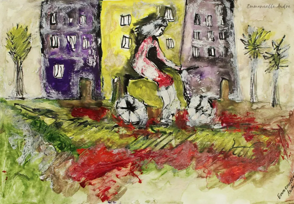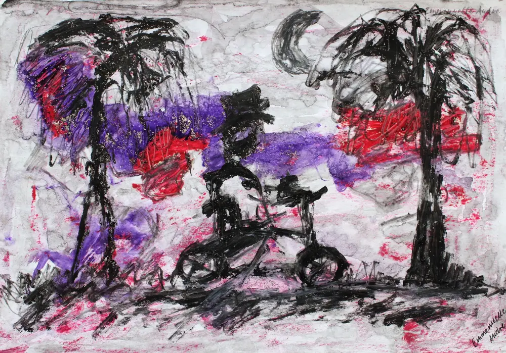 W tej zakładce można obejrzeć kilkanaście moich obrazków, na których zostały przedstawione różne ludzkie historie lub też po prostu ludzie. Przy czym, mimo tytułów nadanych obrazkom, które to tytuły, jak wspomniałam we wprowadzeniu do tej galerii, są całkiem robocze, każdy pojedynczy obrazek można zinterpretować samemu na wiele różnych sposobów. Te prace także bardzo lubię. Obrazki te zostały wykonane na papierze w formacie A4, farbami plakatowymi lub temperą oraz z wykorzystaniem takich środków malarskich jak tusz, ołówek, brokat, marker, lakier do paznokci. Każdy obraz tutaj podoba mi się, między innymi „Mężczyzna na rowerze wśród palm” – kapelusz na jego głowie, te dwie palmy, księżyc i różowawe niebo. Obraz „Przybytek” stał się okładką mojej książki „Przybytek”. Kliknij w link, aby zapoznać się z opisem tej książki. Natomiast obraz „Marzenia i aspiracje ludzkie” stał się okładką mojej książki „Ingrit”. Kliknij w link, aby zapoznać się z opisem tej książki. Te obrazki będą dostępne w formie wydruku na płótnie.