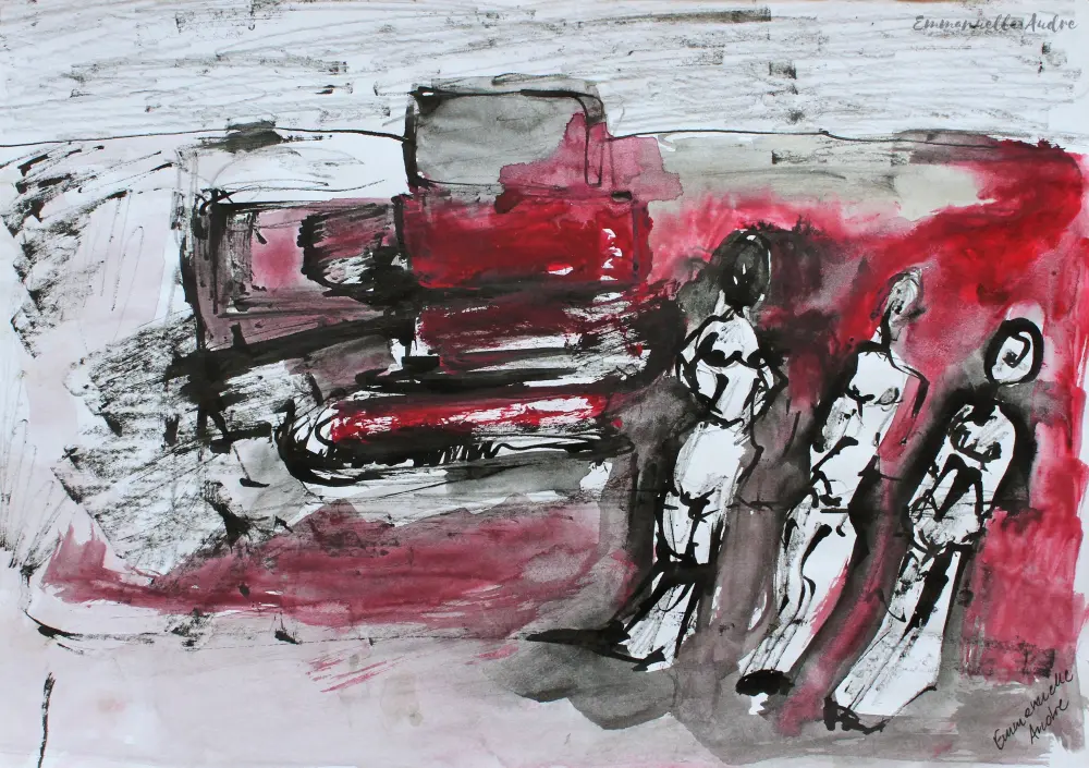 tempera tusz, ołówek, lakier do paznokci, papier 21x29,7 cm (A4)