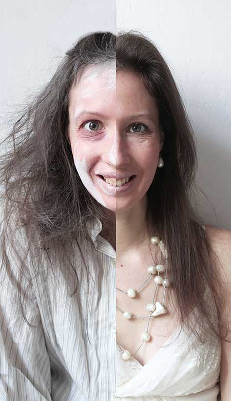Rodzaj użytych materiałów: aparat cyfrowy, przypadkowy codzienny ubiór, kosmetyki do makijażu